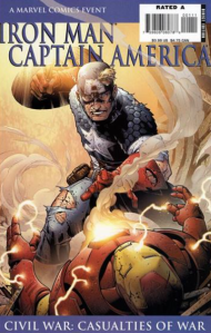 You’d think that the crossover would want to build up to a big confrontation between Iron Man and Captain America, but instead they face off in person quite often during the event. Case in point, the one-shot Civil War: Casualties of War. Shortly after the death of Bill Foster, a.k.a. Giant-Man, Iron Man and Cap meet for a conversation in the dilapidated Avengers Mansion, still trashed after the events of Avengers: Disassembled. (The New Avengers operate out of Stark Tower.)