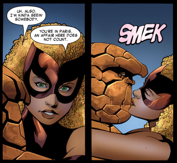 Clobberin’ time: Who is the someone that Ben is “kinda” dating? It’s most likely a reference to Alicia, as the recent Thing miniseries suggested there’s some romance still among them, despite being apart for so long.