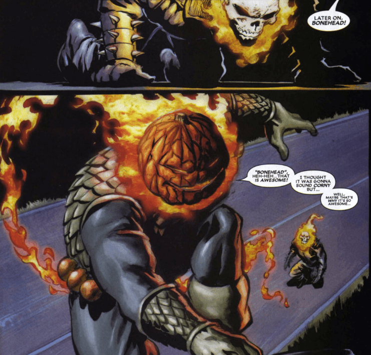 This fight was part of a much bigger ongoing plot about the Rider tracking down all the devil’s avatars on Earth, which I guess also explains why Ghost Rider was too busy to get involved in the Civil War beyond this.