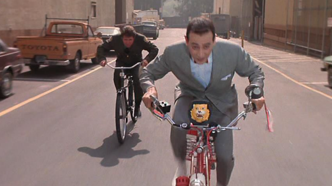 Here’s what happens: After Pee-Wee Herman’s super-cool bicycle is stolen, he goes on a cross-country trek to get it back from the Alamo to Hollywood and back. Who knows who he’ll meet along the way.