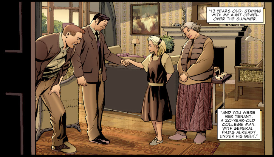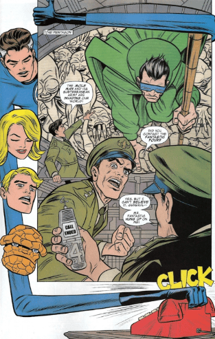 NOW WAIT JUST A MINUTE! Back in vol. 4 issue 4, not only did Marvel retcon Reed and Sue’s age difference to make them the same age, but Marvel editorial released a statement explaining why. (The short answer: So it wouldn’t be creepy.) But now we’re back to the way it was? I suppose that with a bunch of movies in development, and with the Civil War hype possibly attracting new readers, there’s some attempt made to reestablish classic Marvel. Maybe?