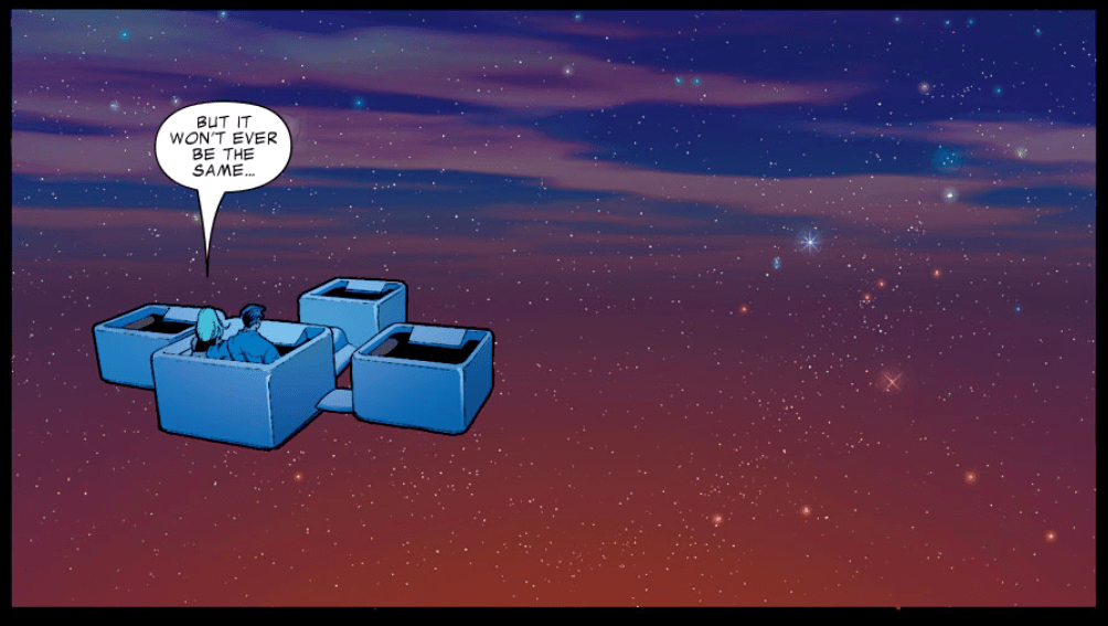 Anyway, aboard the Fantasticar, Sue talks about Reed is not just smart, but genuinely good, and that he seeks to help anyone who needs it. She says she still loves him, “But it won’t ever be the same.”