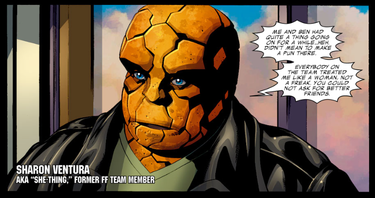 Even Sharon Ventura is interviewed, saying that she and Ben had quite a romance going, and that no one ever treated her like a monster during her time on the team. She-Hulk is next, saying that she’d never seen so much of the universe, not even during her time with the Avengers.
