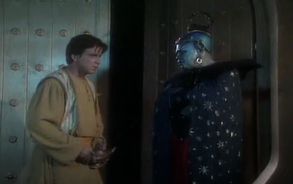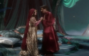Someone was watching: The similarities between this and Disney’s 1993 Aladdin are striking, especially the wizard coercing Aladdin to enter the cave and fetch the lamp for him. To be fair, it has also has a couple shout-outs to the story as it appears in the Book of 1,001 Nights, a.k.a. The Arabian Nights, translated by Richard Burton (no relation?).