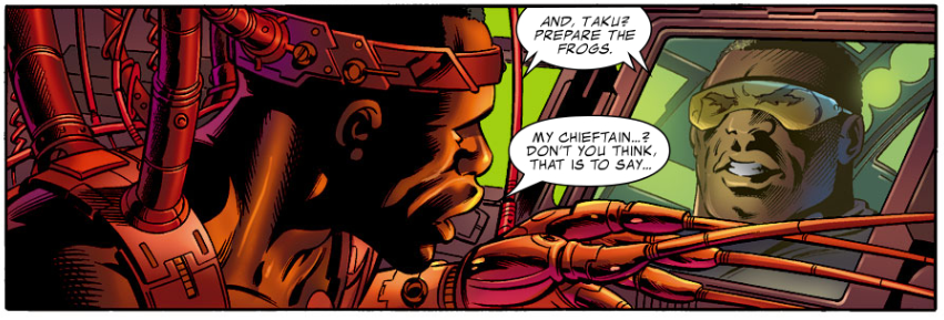 Wakandan agent Taku has been around for a long time, first appearing in Avengers #68, back in 1969. Although he’s antagonistic against T’Challa in this issue, he’s usually depicted as one of Black Panther’s most trusted advisors.