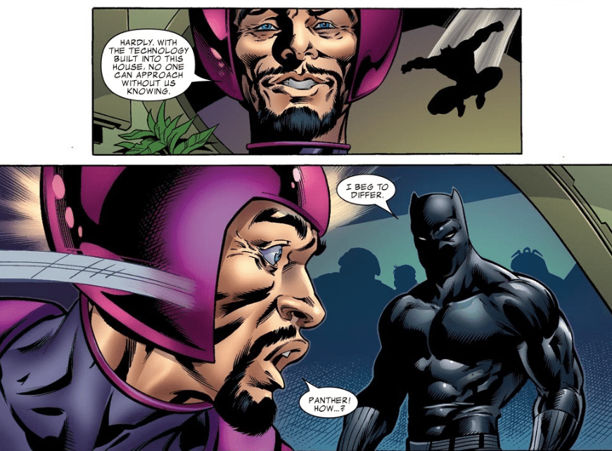 The Wizard says he has prepared for an eventual confrontation with Black Panther, and he pulls out a weapon. It crackles to life, revealing itself to be the sonic weapon used by supervillain Klaw. And then Klaw himself returns to life.