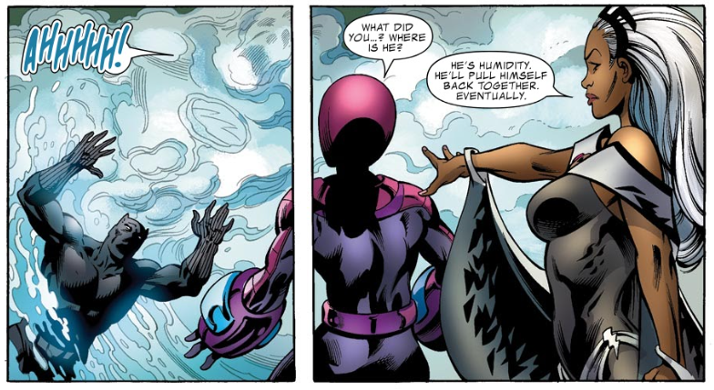 Storm’s defeat of Hydro-Man shows Marvel’s effort at this time to power her up, in that she doesn’t just control the weather, but can control the very atmosphere on a molecular level.