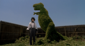 Outsider theory: I don’t know if any Burton character is more of an outsider than Edward. All the suburbanites are drawn to the artwork – topiaries, haircuts, etc. – but they also consider him dangerous, or at least worthy of an entire answering machine tape’s worth of gossip.