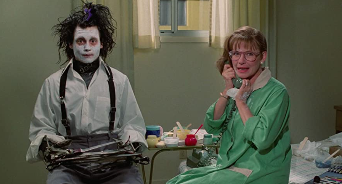 Here’s what happens: Somewhere in suburbia, the local Avon lady decides to try her luck at the deserted old mansion on the hill. There, she discovers Edward, an unfinished mechanical man with scissors for hands. She takes him home with her, setting off a series of events that transforms her neighborhood, brings about some unrequited teen romance, and answers the question, “Where does snow come from?”