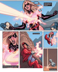 Trivia time: This issue says Klaw died, and the Marvel Wiki adds that his death was in New Avengers #15. But upon re-reading that issue, it’s clear that S.H.I.E.L.D. agents take him into custody after Ms. Marvel defeats him. Klaw shows up in so many places that his continuity is very hard to track. He’ll later play a major role in the ongoing Intelligencia storyline.