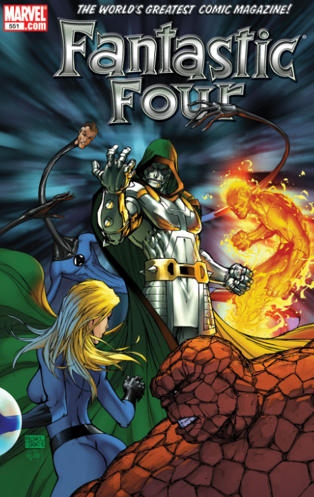Reading the Fantastic Four comics from the start. The original FF are back together in issue #551, but the shadow of Civil War still hangs over them. Also, time travel!