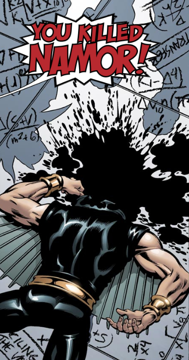 Sue demands that Doom leave, but Doom reminds her of Reed’s questionable and possibly treacherous actions during Civil War. Doom claims that Civil War’s Negative Zone prison violates human rights, and that Reed’s arrogance puts him above “both man’s and god’s law.” He then rubs salt on the wound by reminding everyone of Bill Foster’s death during Civil War.