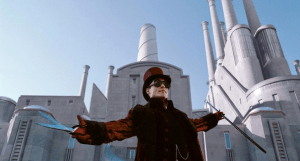 Reality breaks through: While the whole movie takes place in a whimsical fantasy world, both in and out of the factory, the character Mike Teevee represents the real world. He’s very modern and contemporary, and he’s the one who nitpicks the fantasy trappings throughout. Willy Wonka dismisses him as “mumbling,” and I wonder if this is how Burton dismisses critics in real life.