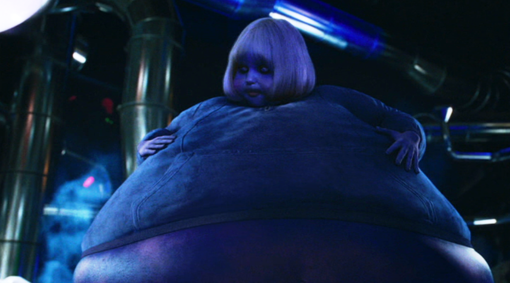 Reality breaks through: While the whole movie takes place in a whimsical fantasy world, both in and out of the factory, the character Mike Teevee represents the real world. He’s very modern and contemporary, and he’s the one who nitpicks the fantasy trappings throughout. Willy Wonka dismisses him as “mumbling,” and I wonder if this is how Burton dismisses critics in real life.
