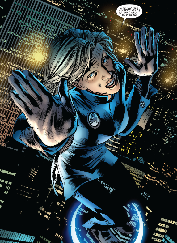 Sue-per spy: The 2019 Invisible Woman miniseries revealed that Sue was secretly a S.H.I.E.L.D. agent all along. We see using that spy training as Mrs. Deneuve, infiltrating and then incapacitating the FF.