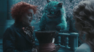 Here’s what happens: Alice Kingsleigh’s thoughts dwell on absurd notions, and she does not want to marry the foppish Hamish Ascot. She then tumbles down a rabbit hole to find herself revisiting another world (or perhaps a dream) that she once visited as a child. But the whimsical Wonderland has become a dystopian “Underland,” where the people are oppressed by the selfish Red Queen. Alice is a chosen one, dubbed “The Alice” and only she can lead the rebellion to restore freedom to Wonderland.