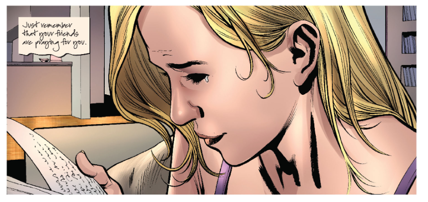 Cut to months later, and we see a letter Rhona has written to Sue, revealing that the last child taken by Korgo was hers. She’s moved to another town, gotten married, and has a new baby on the way. She says this one’s going to be safe. There’s a bit of foreshadowing when Rhona says she’s sorry about what happened with Dr. Doom and with Ben’s fiancé. She ends by saying “Just remember that your friends are praying for you.”