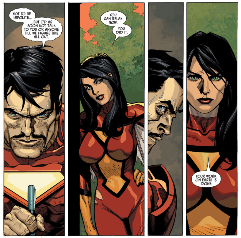 Spider-Woman finds Iron Man in his cave in the Savage Land. Here we learn she’s not just a Skrull, but the Skrull Empress! She tells Tony that he’s been a sleeper agent all along, that he’s not even aware he’s a Skrull. He refuses to believe her. In New York, it looks like the Skrulls are winning, until Nick Fury shows up with a brand-new team of modern-day Howling Commandoes that he’s been recruiting in secret. Fury says, “Let’s turn this thing around!”