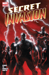 Gimmie a gimmick: If Secret Invasion is famous for anything, it’s all the covers! Marvel flooded its entire line with gimmick covers, in which famous Marvel art was redone with the characters as Skrulls. For months, you’d walk into the comic book store and see an entire wall of those green faces staring back at you.