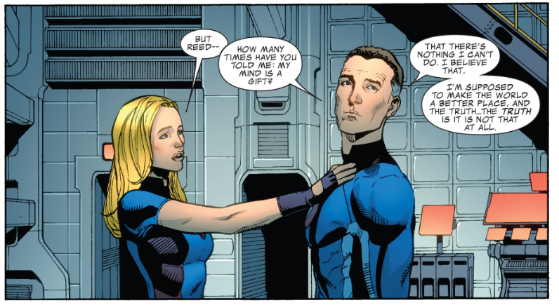 Fade out: With Reed inside the Bridge, Sue immediately takes the leadership role when the Baxter Building is attacked. Reed and Johnny know to take her orders.