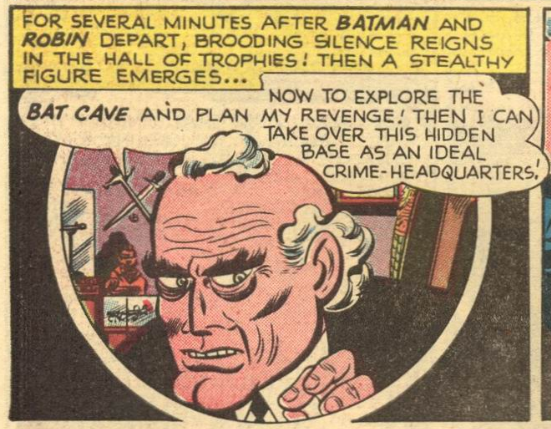 Trivia time: This is the only canonical appearance of DC’s Dr. Doom, although DC reprinted this story many, many times over the years, no doubt adding to the popularity of the idea of the Batcave trophies.