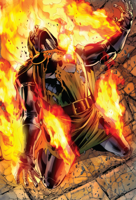 Turn the page, and there’s Dr. Doom being engulfed in flame.