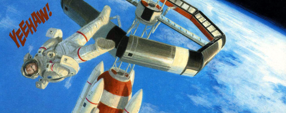 The four are astronauts, and it seems they’ve been living aboard the station for a while, given their playful sitcom-style bickering. Johnny is outside on a spacewalk for some adrenaline rush thrills. Ben dons a spacesuit to fly after Johnny and bring him back. While they’re doing that, Reed’s instruments pick up an unusual solar event. The station is struck with a huge energy wave. There’s an interesting bit where Johnny and Ben hear the “tac-tac-tac” sound effect inside their helmets.