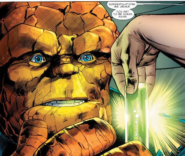 Foundational: Reed assumes that Dragon Man came up with the idea to cure Ben, but Mik, one of the Moloids, takes credit. Bently-23 gets his first-ever line of dialogue when he suggests they test the cure on a clone of Ben. This is of note because Bently himself is a clone.