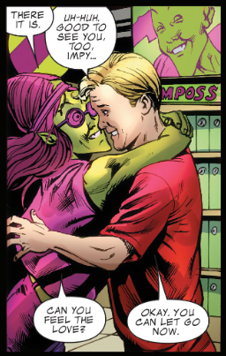 Fantastic fifth wheel: The issue remembers that Impossible Man was once a member of the FF, during the short-lived “Fantastic Seven” of the ‘70s. He greets Johnny with a hug when they’re reunited.