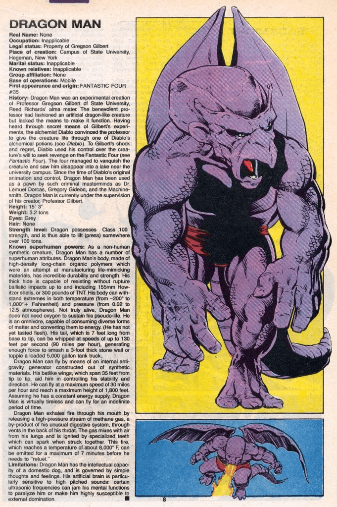 Reading the Fantastic Four comics from the start. But it’s been a hectic week, so instead let’s get to know one of our new Future Foundation members, Dragon Man!