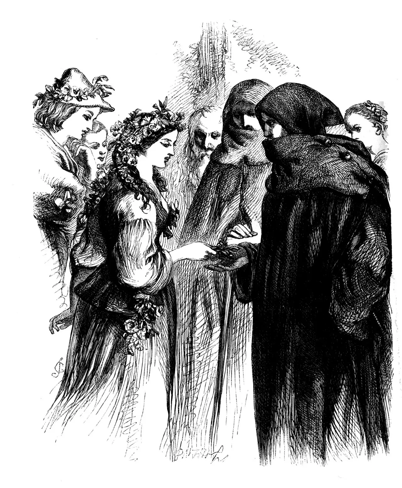 Polixenes, still in his disguise, asks Florizell, his own son, about the romance between Florizell and Perdita. This is following a short aside where Polixenes says, “Tis time to part them.” He asks Florizell about showering Perdita with gifts, but Florizell says she’s above such trifles. He then professes his love directly to Perdita, who doesn’t speak in response. Shakespeare leaves it all up to the actresses’ interpretation of the scene.