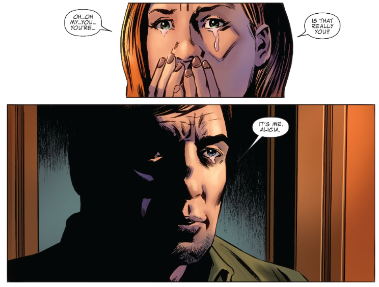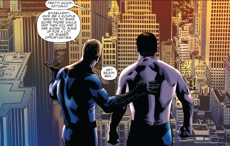 Trivia time: Remember that Ben and Alicia haven’t been a couple for a long time, despite occasional hints that there’s still some romance there. The Marvel Wiki states they don’t officially reunite until much later, but it looks to me like they’re reuniting now.