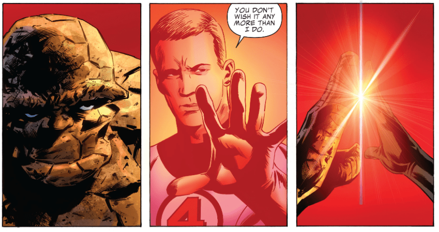 Four and a half: Franklin’s powers are back, but how are they manifesting this time? He’s just unleashing powerful energy blasts, something different than his usual create-pocket-universes power, or his lesser seen dreams/psionic power.