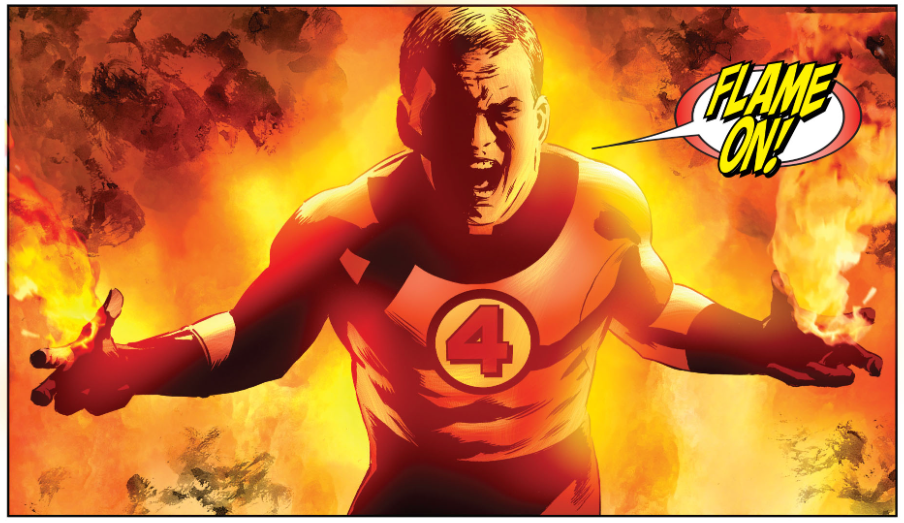 Johnny says the Avengers have been called for backup, but it’ll take them time to arrive. During this month’s issue of Avengers, the team was in crisis after Steve Rogers (who at this point was just “Captain Rogers” and not Captain America) learned about Iron Man’s involvement in the Illuminati, threatening to boot Iron Man off the team. It’s probably for the best that all this drama didn’t spill over into Fantastic Four.