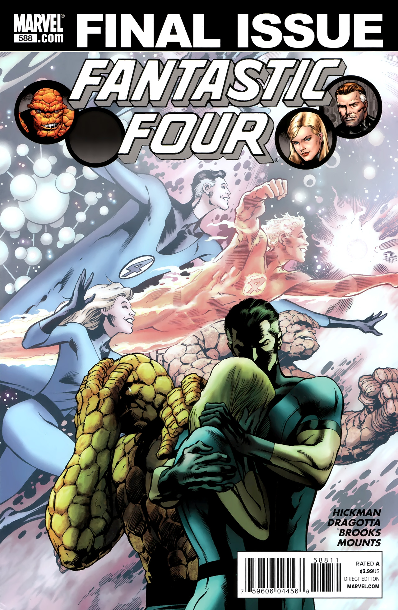 Reading the Fantastic Four comics from the start. It might look like an ending, but issue #588 is more of an in-between issue following a major character death last issue and new lineup in the next one.