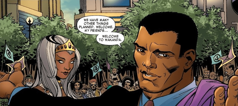 Fantastic Fifth Wheel: Yes, Storm and Black Panther are still a couple at this time, with her continuing to bounce back and forth between Wakanda and the X-Men. T’Challa describes his friendship with Reed as being like brothers.