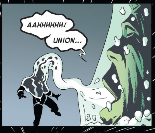 Johnny, after losing the Negative Zone election to Annihilus, prepares to return Annihilus to the Negative Zone. He’s joined by the Light Brigade, alien superheroes he befriended during his rise to power in the zone. They send Annihilus back, but Johnny says he’s keeping Annihilus’ cosmic control rod. At the Future Foundation’s new school, located on board the Foundation space station, Reed gives the kids a lesson about aliens, when Attilan approaches. There’s a bit of business where a Light Brigade member named Kal Blackbane is reunited with his mother (why is this in the comic???) and then Black Bolt and Medusa welcome them, letting Attilan be the Light Brigade’s new home.