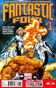 Reading the Fantastic Four comics from the start. We’ve reached an interesting and exciting time in the series’ history. This is still two comics, Fantastic Four and FF, now restarted with new #1 issues, both written by Matt Fraction, and both telling a single ongoing story meant to go for more than a year in real-world time.