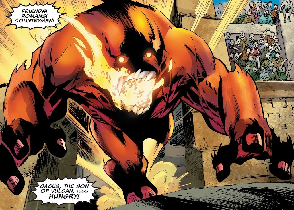 This is the only appearance of Cacus, so we have no idea where the monster came from. The Marvel Wiki argues that the monster is indeed somehow the biological son of Vulcan, Roman god of the underworld. Vulcan has been a recurring character in Thor, Hulk, and Guardians of the Galaxy.