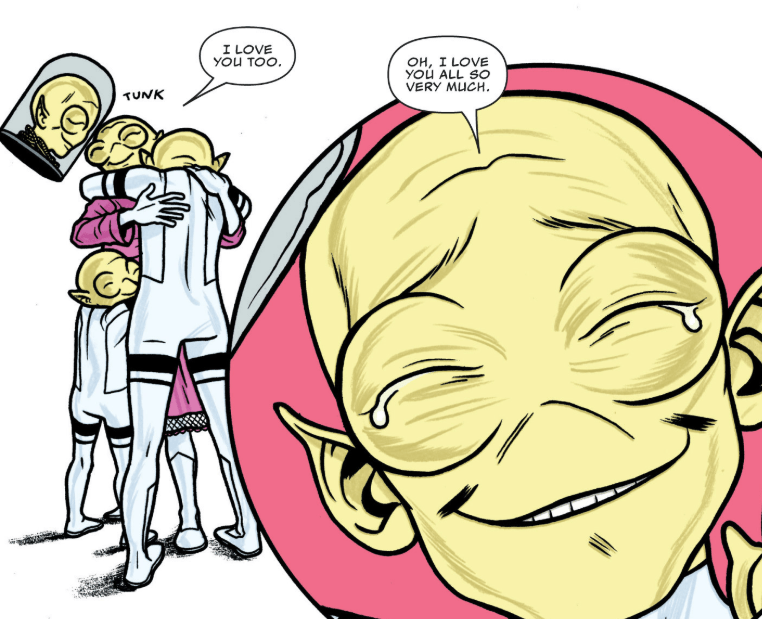 What to make of this? On one hand, representation is good. On the other hand, having a trans character also be an alien creature is perhaps a mixed message. The real message, I suppose, is how everyone else loves and accepts Tong for who she authentically is. As I recall, a criticism many had at the time was that this had no relevance to the ongoing plot. But isn’t that the way life works? A person’s coming out should be an ordinary thing, and not a shocking plot twist, right? Was anyone buying this comic thinking, “I wonder what Tong is up to this month?” I’m not an expert on these things in the least, but it seems to be that this was tastefully done.