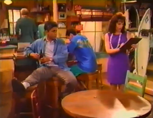 Big Wave Dave’s had the easy-to-sell premise – Chicagoans are fish out of water in Hawaii – and tons of talent. In addition to the big-name cast listed above, the show was co-produced by Ken Levine, who worked on M.A.S.H., The Simpsons, Frasier, and many others. (Also The Marshall Chronicles, which I covered previously on this blog series.) With all this talent involved, I have no idea why the show lasted only six episodes. Low ratings would seem to be the cause, but I wonder if costs might have something to do with it. The running joke throughout these six episodes is how Marshall and wife keep moving into a new house/apartment, only for some disaster to befall it. This meant a new bedroom set in almost every episode.
