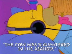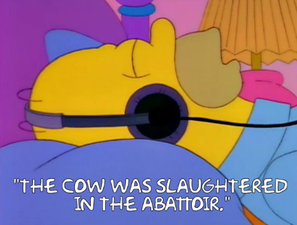 Abattoir is defined as just “slaughterhouse.” Did anyone NOT learn that from The Simpsons?