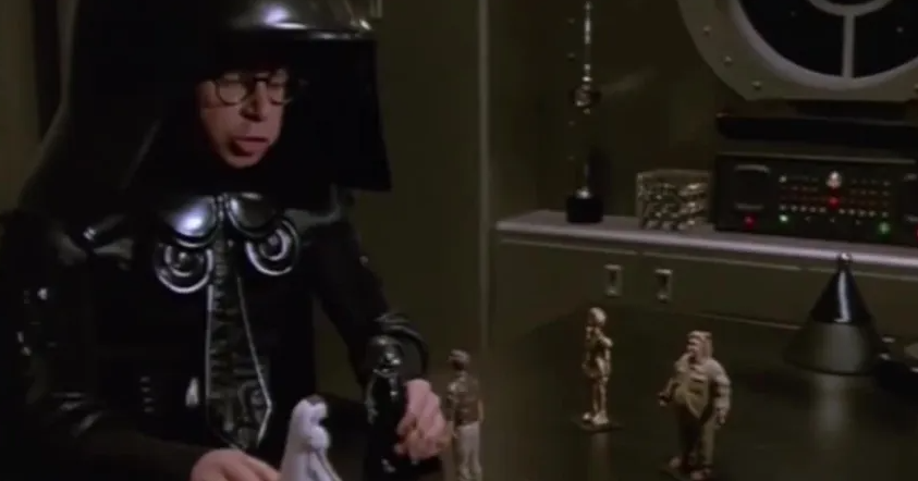 A doll is “a small figure of a human being used especially as a child’s plaything,” as well as both “a pretty woman,” and “an attractive person.” Nobody tell Dark Helmet that this means his action figures are, in fact, dolls.