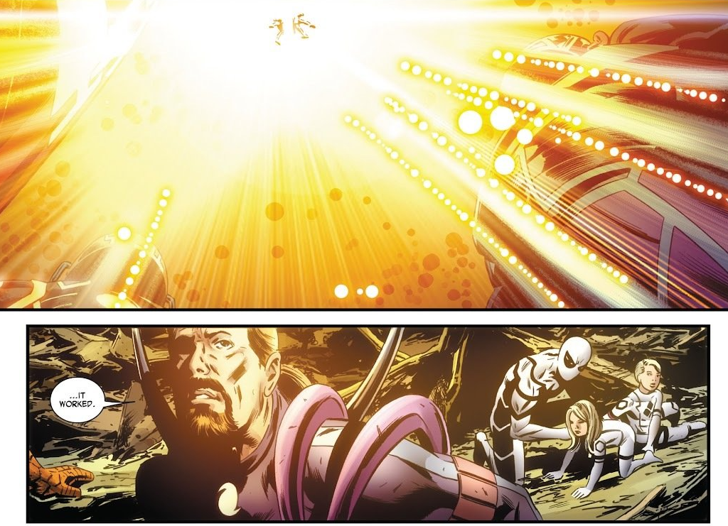 Unstable molecule: While Dr. Doom doesn’t exactly thank Reed as Valeria asked, Reed’s response to Doom is simply “Good enough,” and “Let’s go home.”